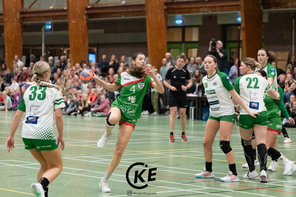 Een voorsprong dus vanaf de eerste minuut die ook niet meer uit handen gegeven werd. Al betekende dat niet dat het niet spannend bleef. Na twintig minuten stond er, mede door weer sterk keeperswerk van Minke van den Nieuwendijk, een mooie 10-4 voorsprong op het scorebord. Quintus kwam daarna weer dichterbij naar 14-12, maar door maar liefst vijf doelpunten op rij van VELO, waaronder twee van Maaike Moerman, was het verschil toch weer vijf en gingen we met een 20-15 voorsprong de rust in.