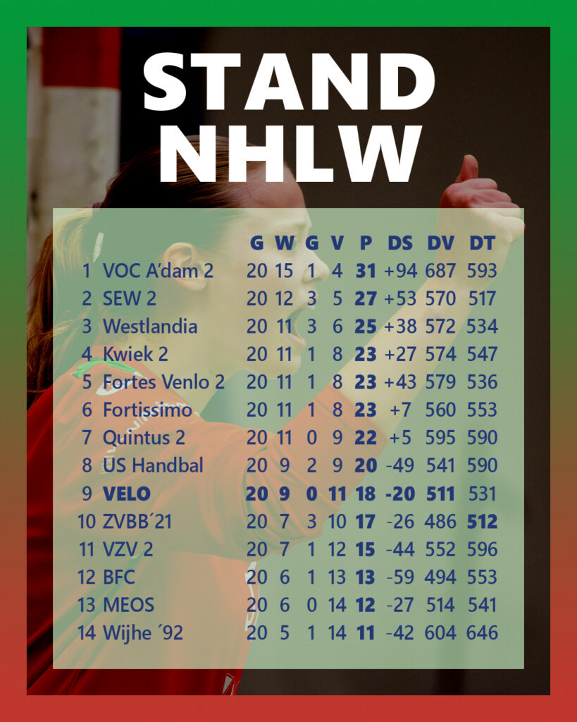 Hoewel VELO bijna de hele wedstrijd achterstond in Beek, soms zelfs met vier of vijf doelpunten verschil, bleef het geloof in een goede afloop bestaan. Door als team van begin tot eind te blijven strijden, werd dat in de slotfase dan ook bewerkstelligd: 20-22.