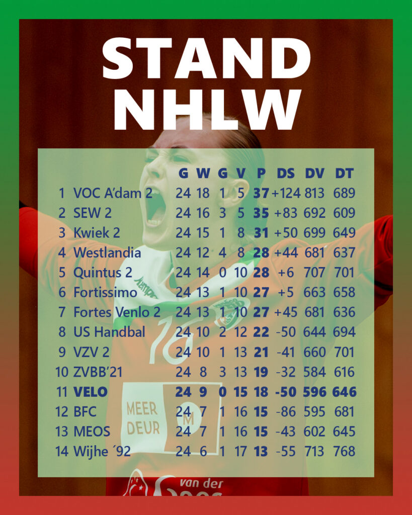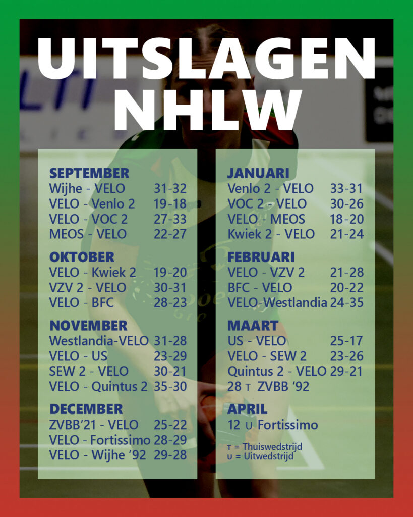 Doelpunten VELO: Nikki Schildmeijer (5), Bente van Steekelenburg (4), Lotte Duijnisveld (4), Maaike Moerman (3), Kim Schildmeijer (2), Laurie Esmeijer (1), Noortje van der Stap (1) en Sasha Nederpel (1).